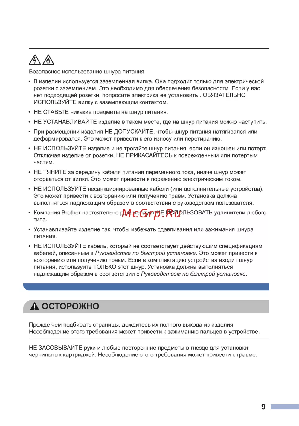 Brother HL-J6000DW — рекомендации по безопасному использованию шнура питания [9/23]