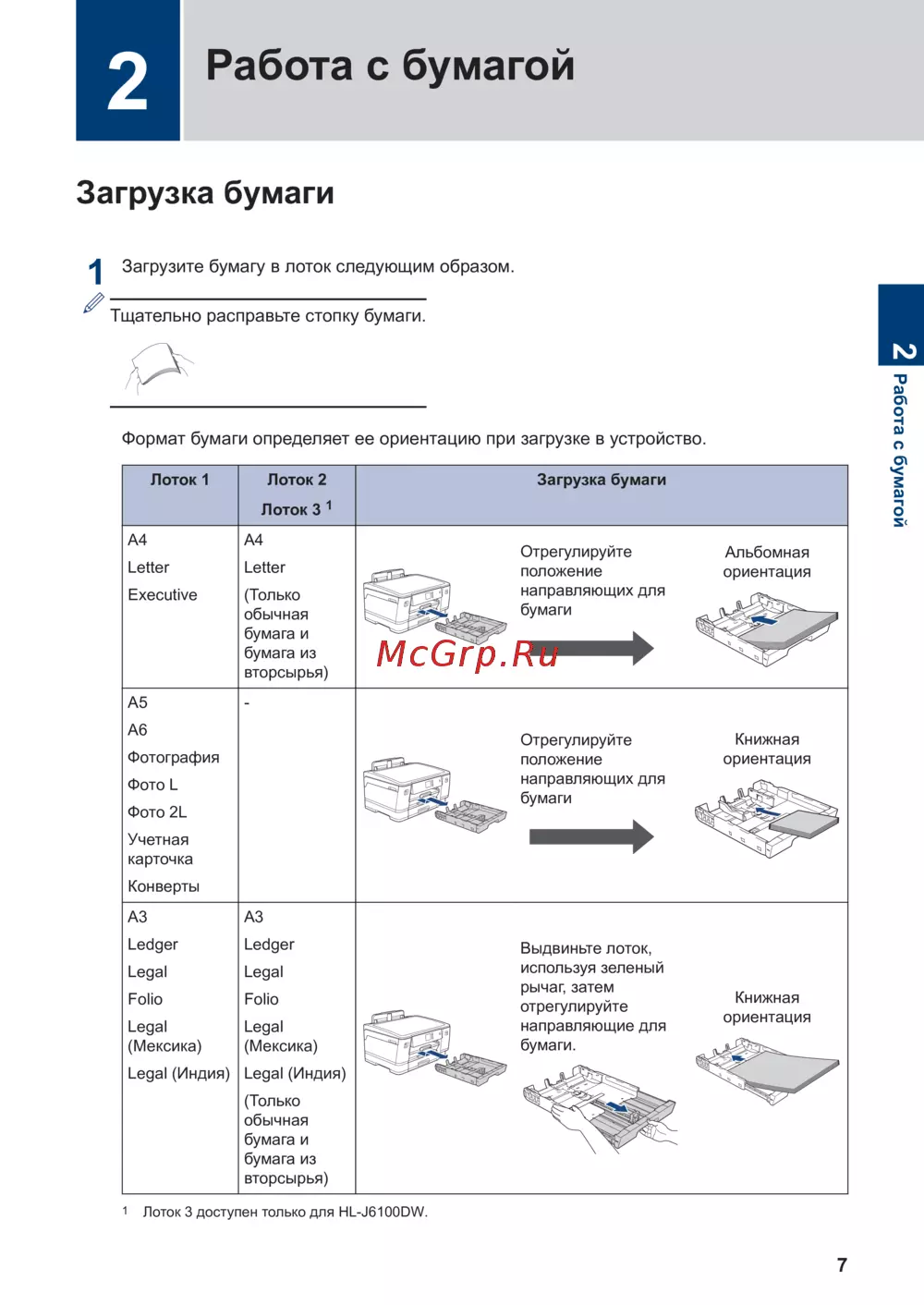Лоток 3 доступен только для HL-J6100DW.