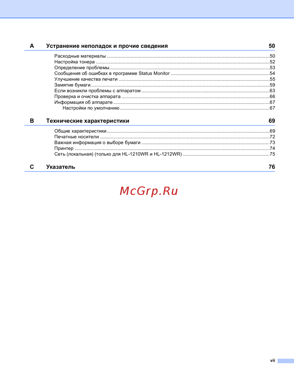 ![Brother HL-1200R [8/85] A устранение неполадок и прочие сведения 50](/views2/1198926/page8/bg8.png)