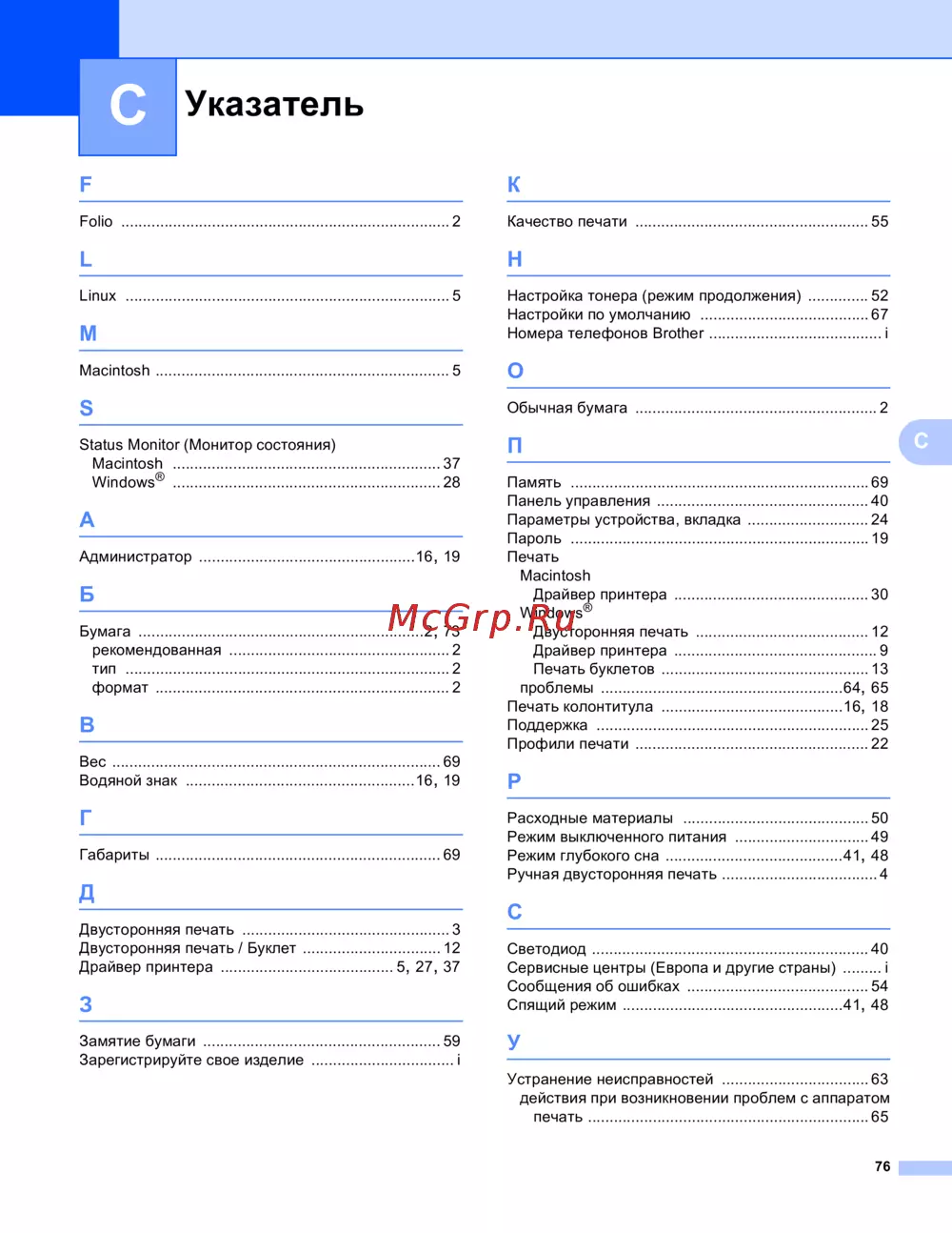 Brother HL-1200R — полный указатель функций и настроек печатающих устройств [84/85]