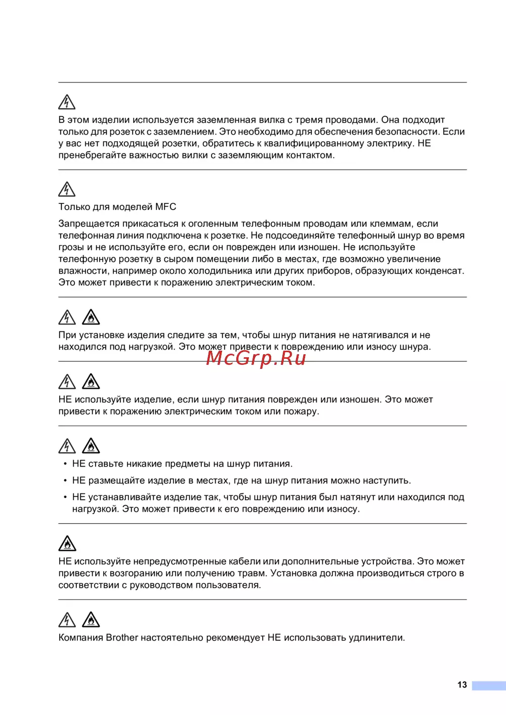 - Информация о разрешенном использовании только для моделей mfc p.16