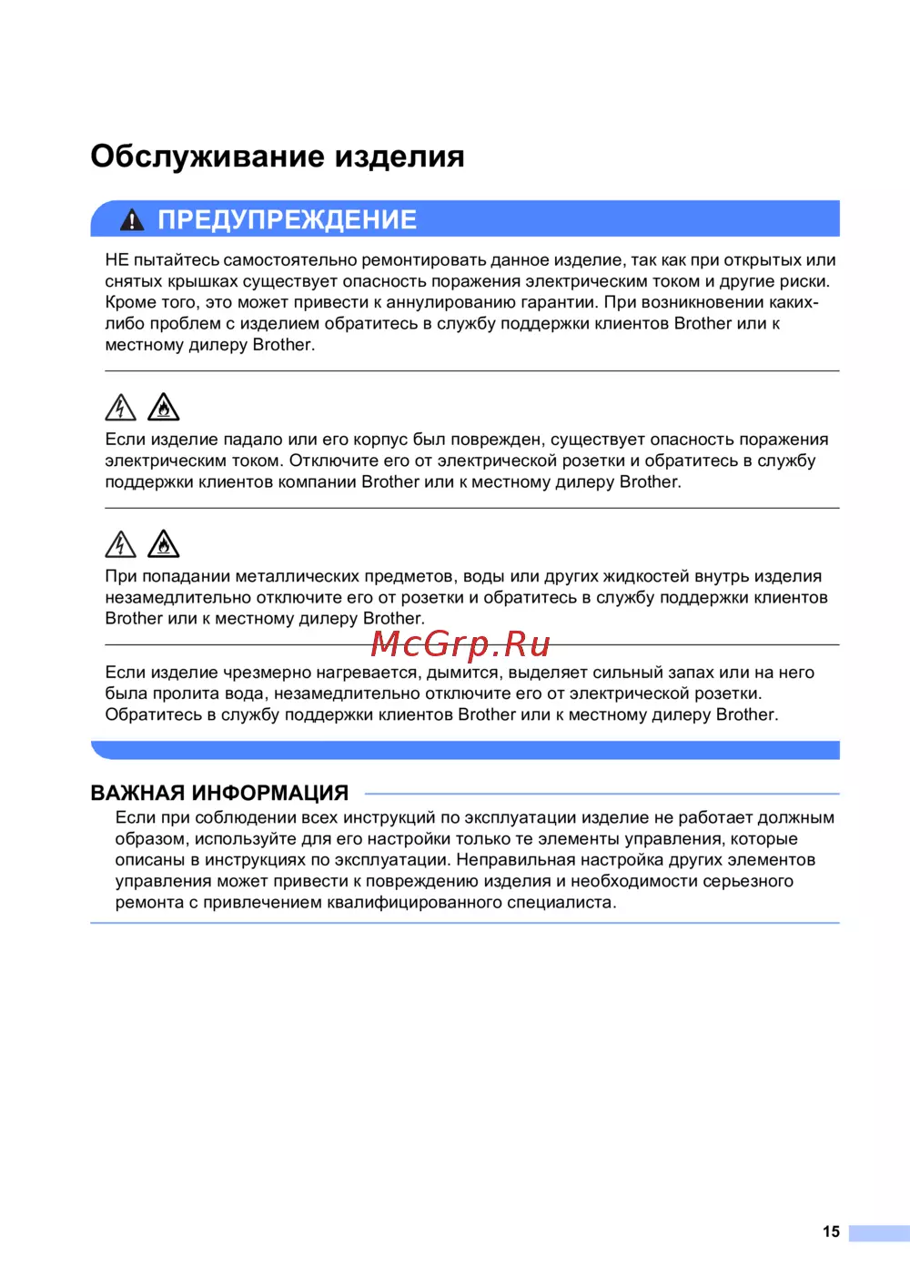 - Предупреждение p.15