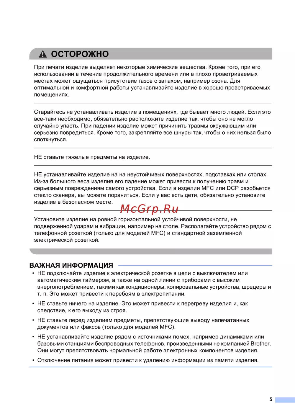 - Информация о разрешенном использовании только для моделей mfc p.16