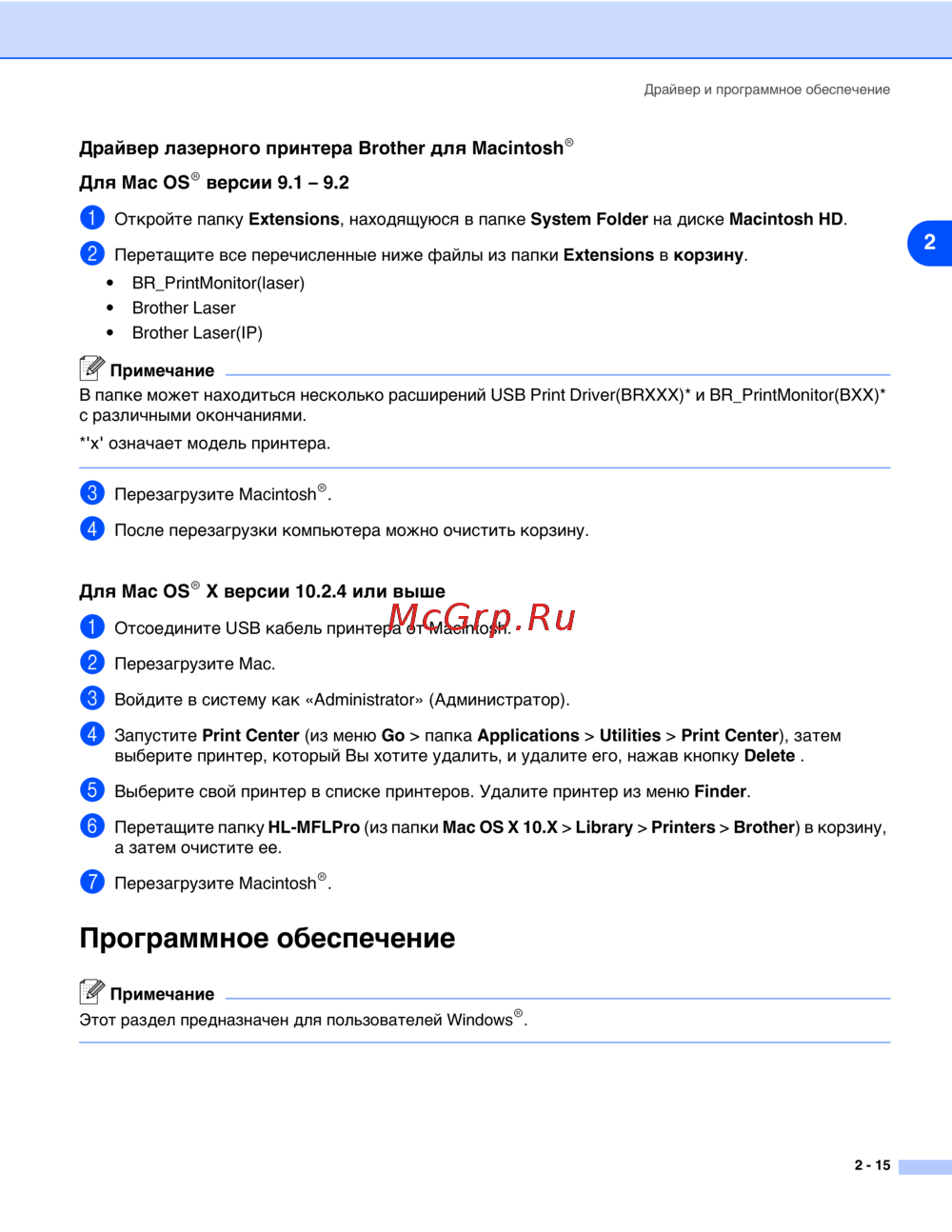 Brother HL-2030 — инструкция по удалению драйвера лазерного принтера для Mac [41/105]