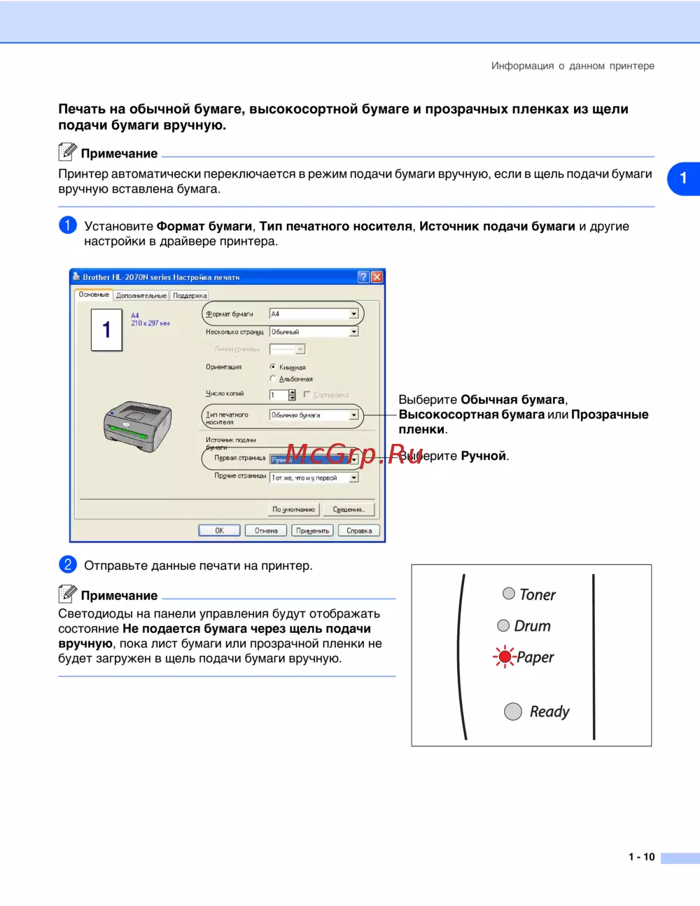 - Печать на обычной бумаге высокосортной бумаге и прозрачных пленках из лотка для бумаги p.14