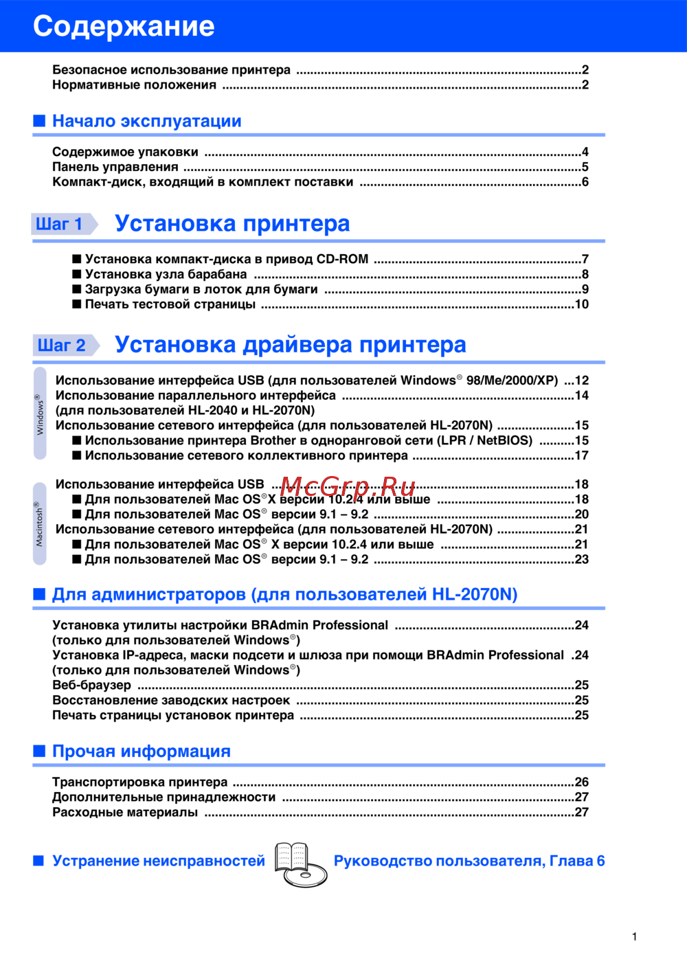 - Для администраторов для пользователей hl 2070n p.26
