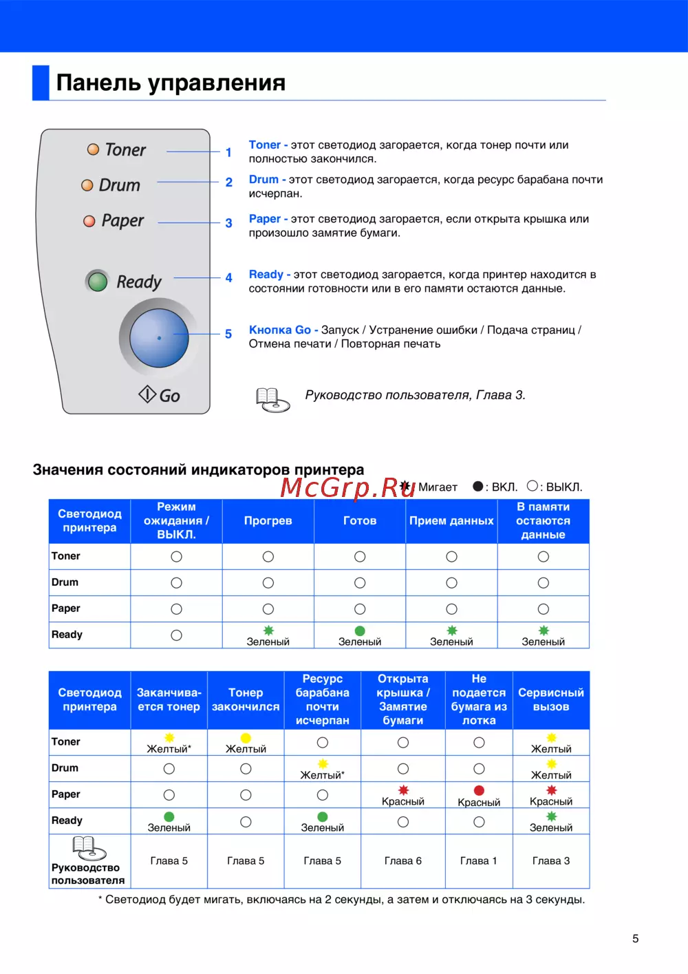 Brother HL-2070N — индикаторы состояния принтера: что они означают [7/30]