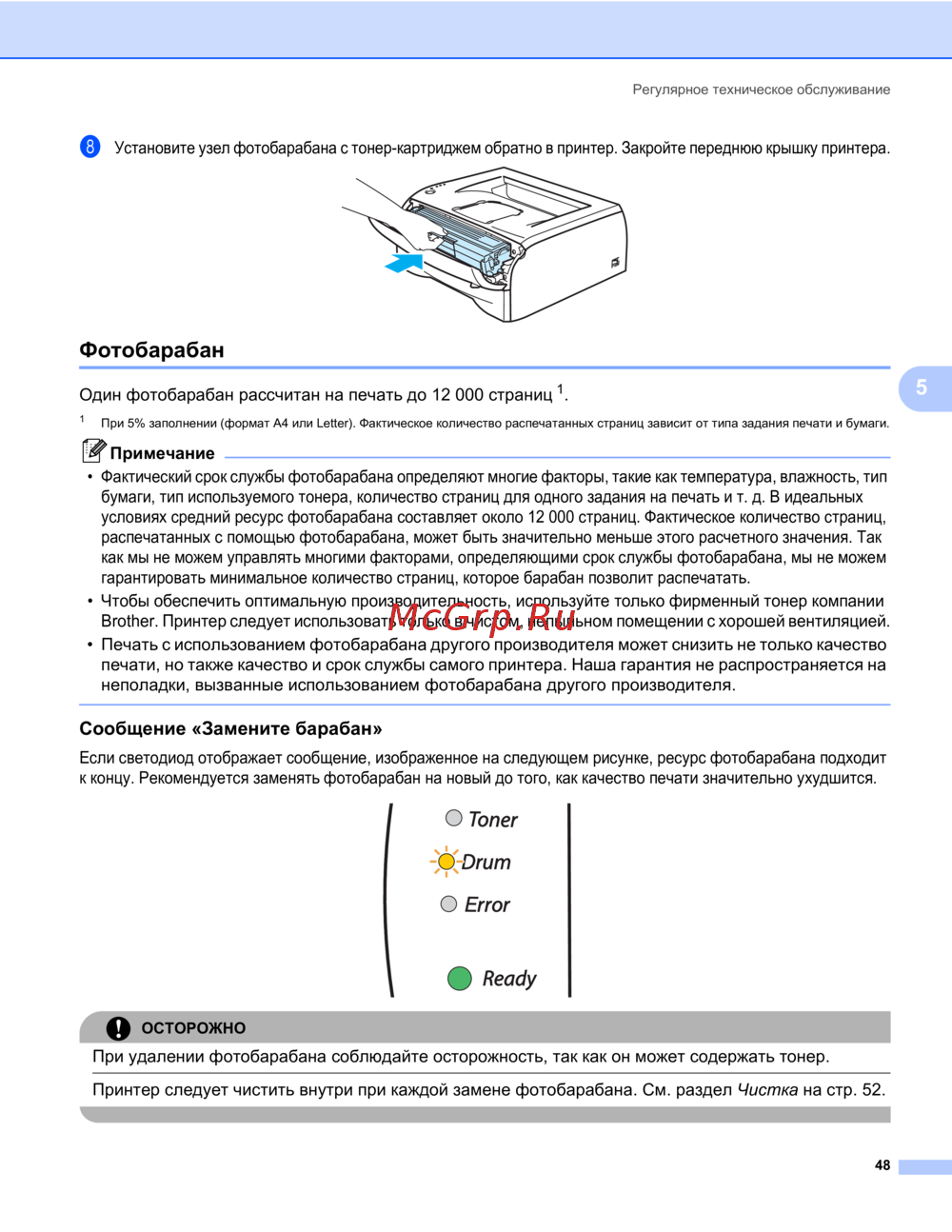к концу. Рекомендуется заменять фотобарабан на новый до того, как качество печати значительно ухудшится.