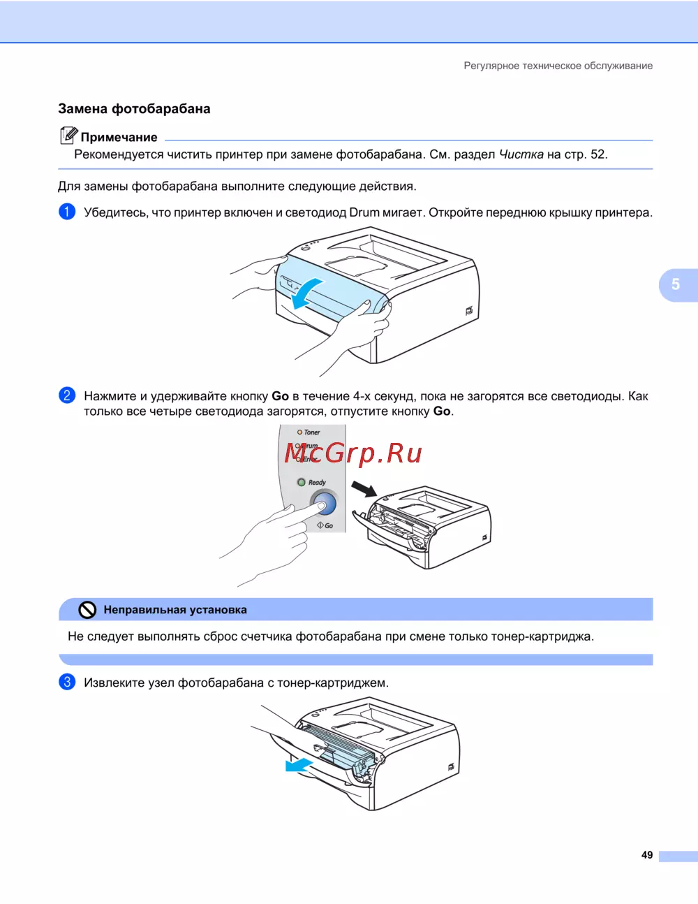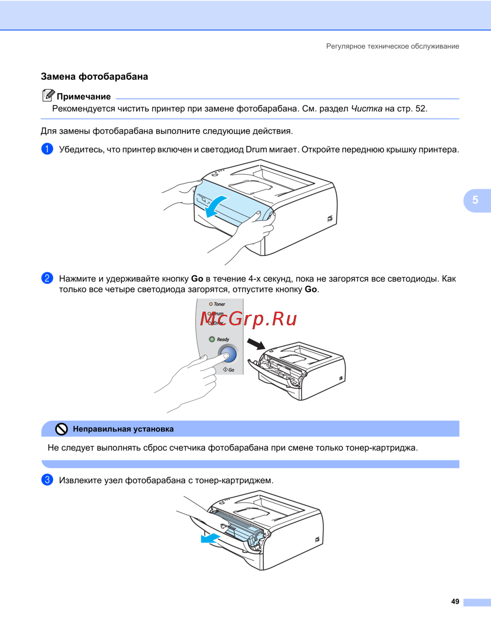 Рекомендуется чистить принтер при замене фотобарабана. См. раздел Чистка на стр. 52.
