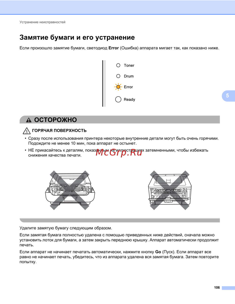 - Сначала убедитесь в том что используемая бумага соответствует рекомендуемым спецификациям компании brother см раздел допустимая бумага и другие материалы для печати на стр 3 p.108