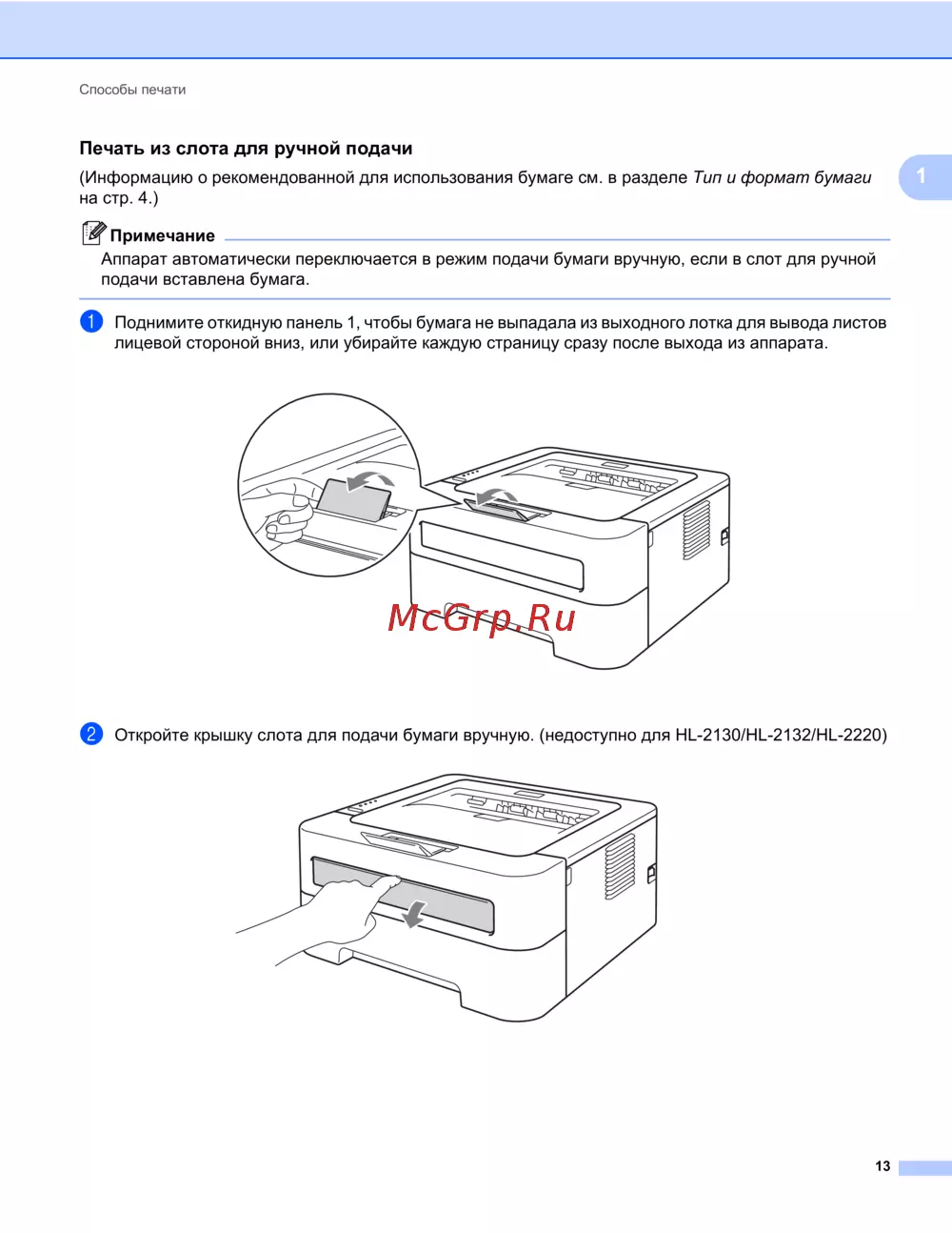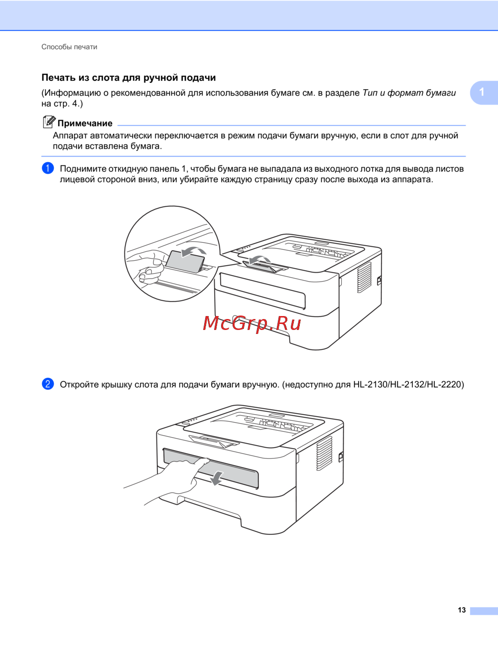 Brother HL-2132 — способы печати: ручная подача бумаги и советы [17/154]