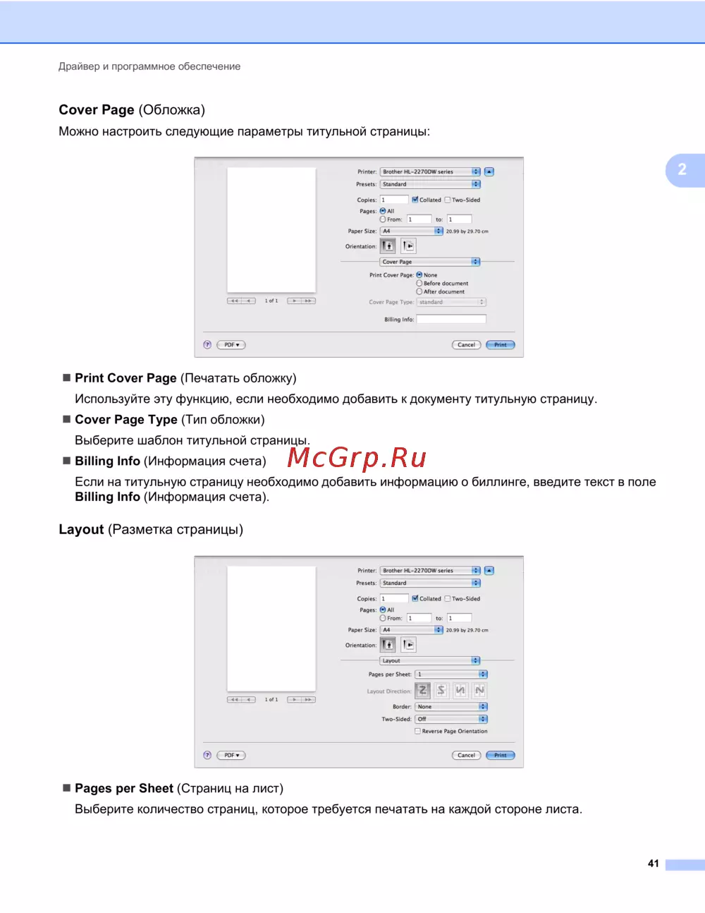 Brother HL-2250DN — настройка параметров титульной страницы и разметки документа [45/154]