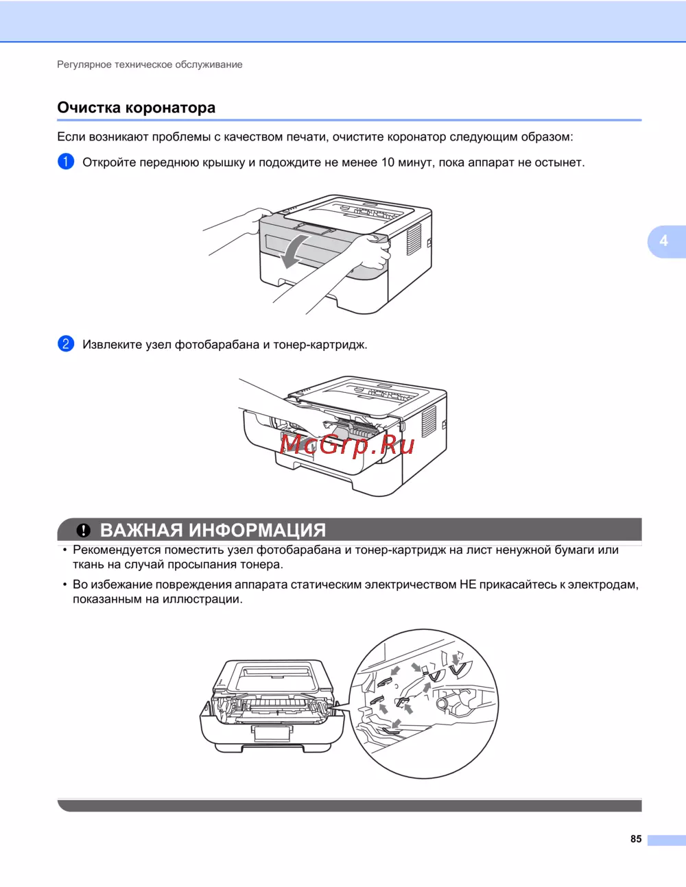 Brother HL-2250DN — регулярное техническое обслуживание и очистка печатающих устройств [89/154]