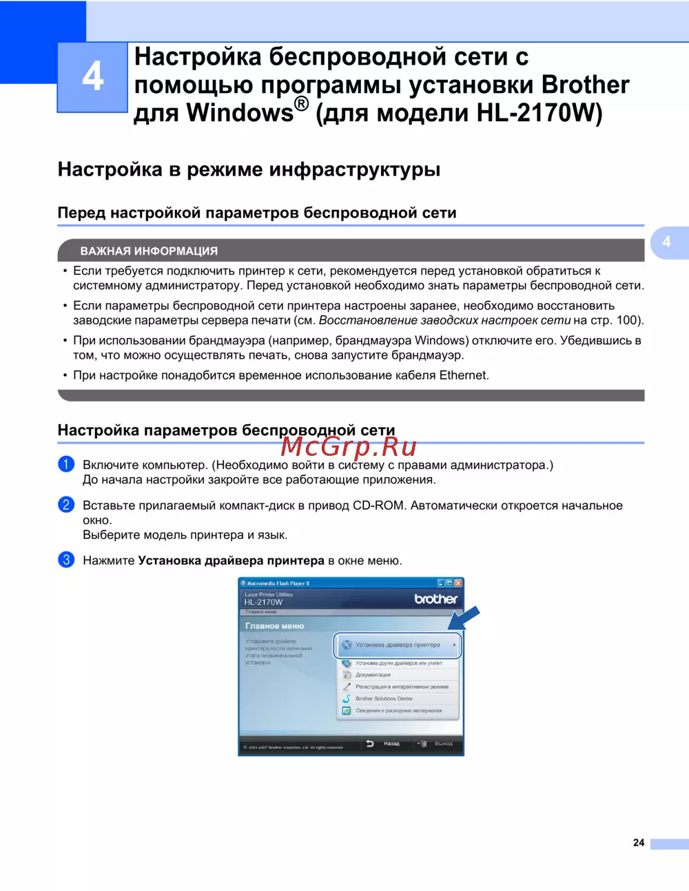 - Настройка параметров беспроводной сети для модели hl 2170w 15 p.4