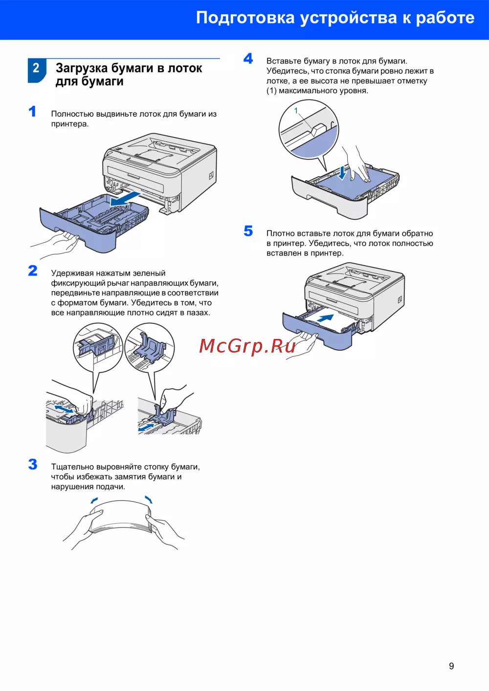 Brother HL-2150N — инструкция по загрузке бумаги в принтер: шаг за шагом [11/50]