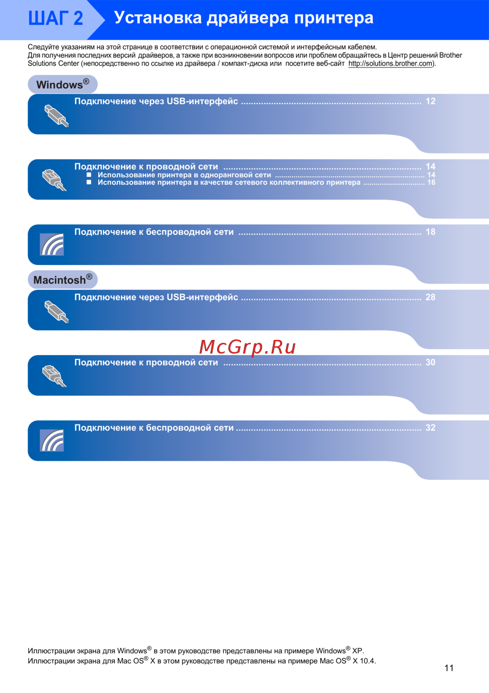 Для получения последних версий драйверов, а также при возникновении вопросов или проблем обращайтесь в Центр решений Brother