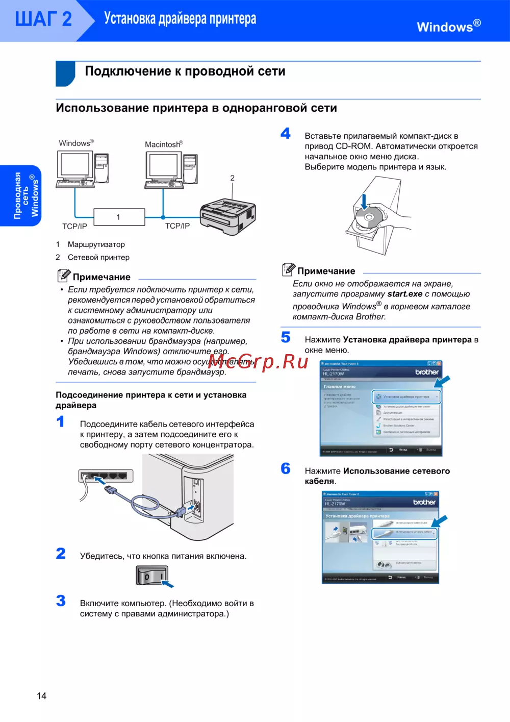 Brother HL-2150N — инструкция по установке драйвера принтера в проводной сети [16/50]
