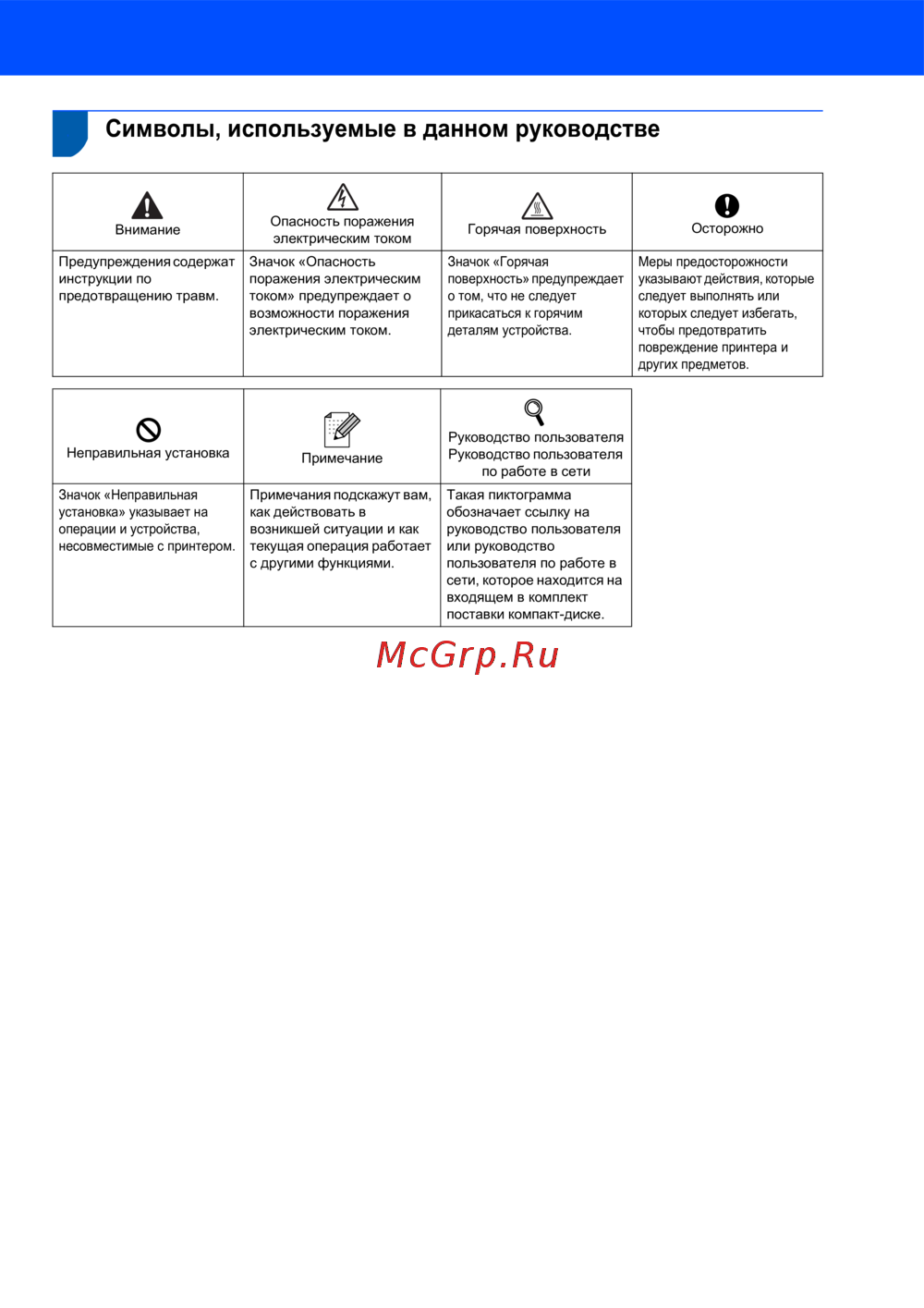 ![Brother HL-2150N [2/50] Символы используемые в данном руководстве](/views2/1469049/page2/bg2.png)