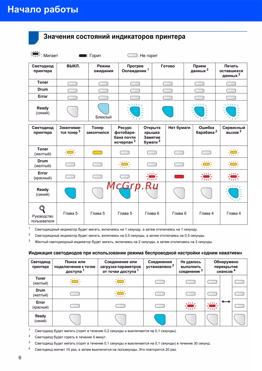 Brother HL-2150N — значения индикаторов принтера и их состояния [8/50]