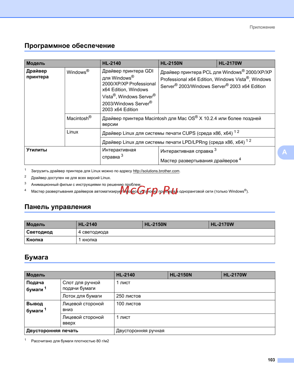 - Технические характеристики принтера p.108
