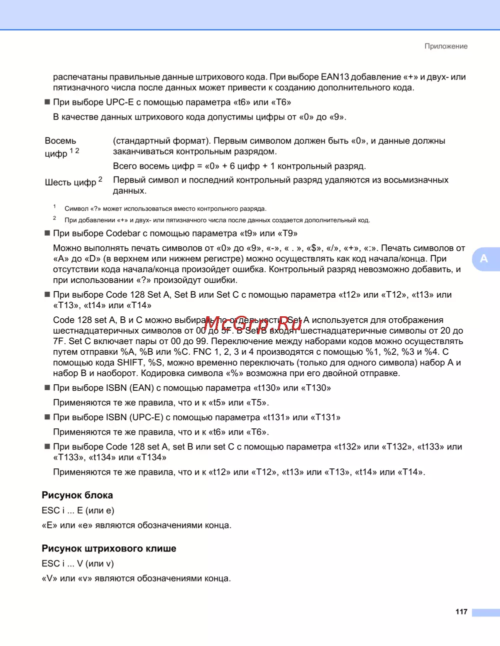 - Смещение по оси y штрихового кода и расширенного набора символов p.122