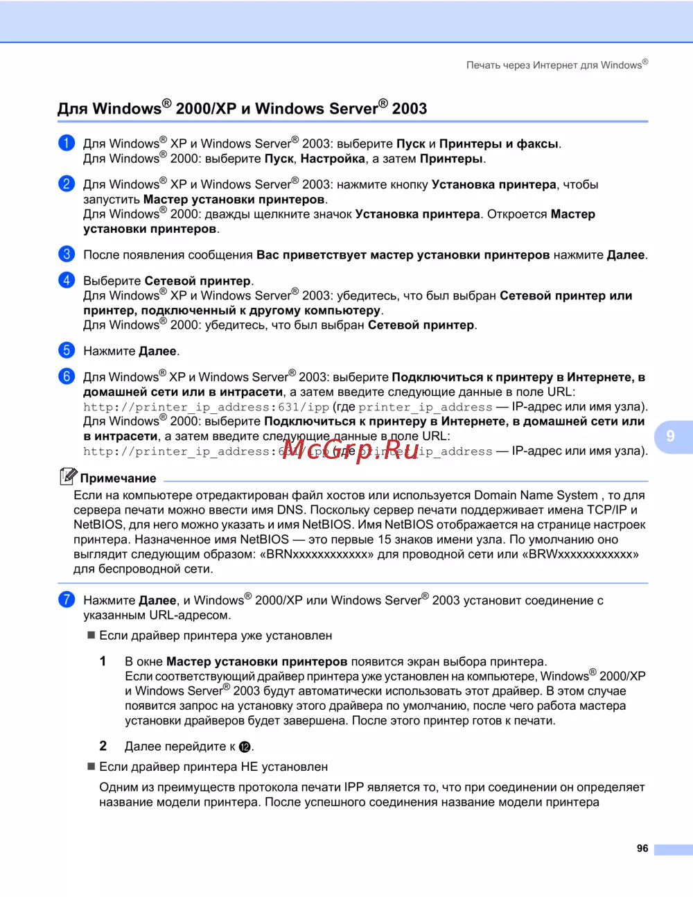 - Устранение неисправностей протокола ipp для пользователей windows 2000 xp windows vista и windows server 2003 p.124