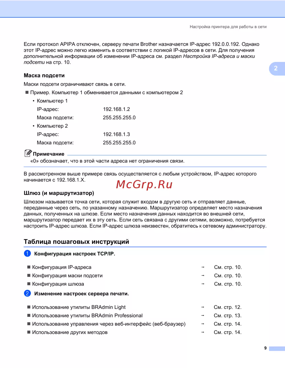 - Настройка ip адреса с помощью серверного программного обеспечения brother web bradmin для iis p.131