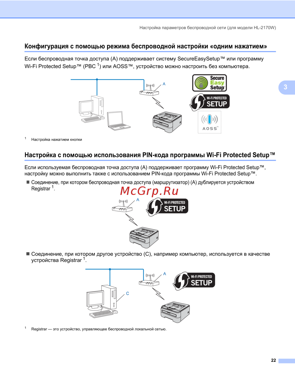 - Настройка беспроводной сети с помощью режима беспроводной настройки одним нажатием для модели hl 2170w 69 p.5