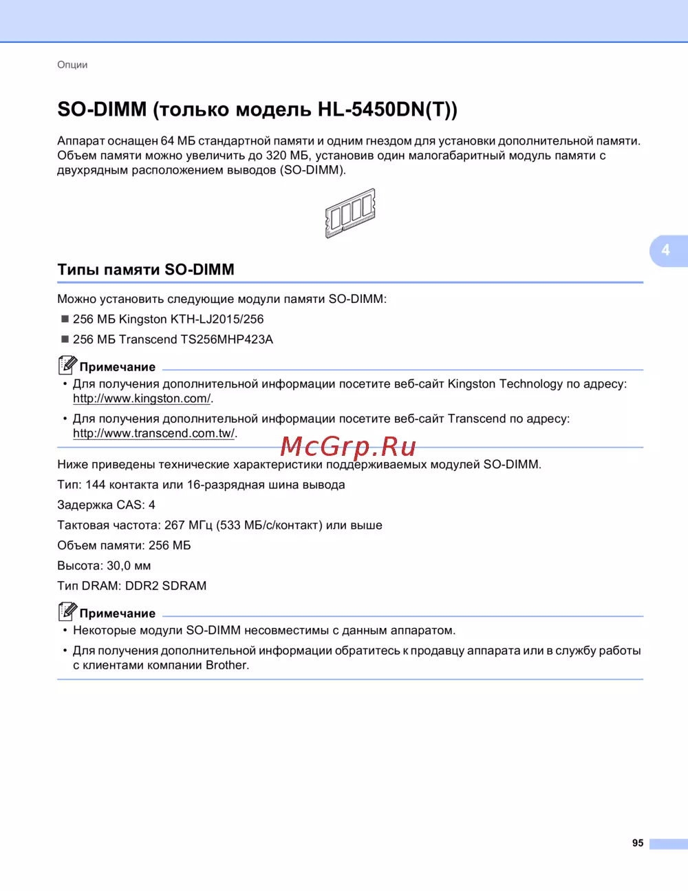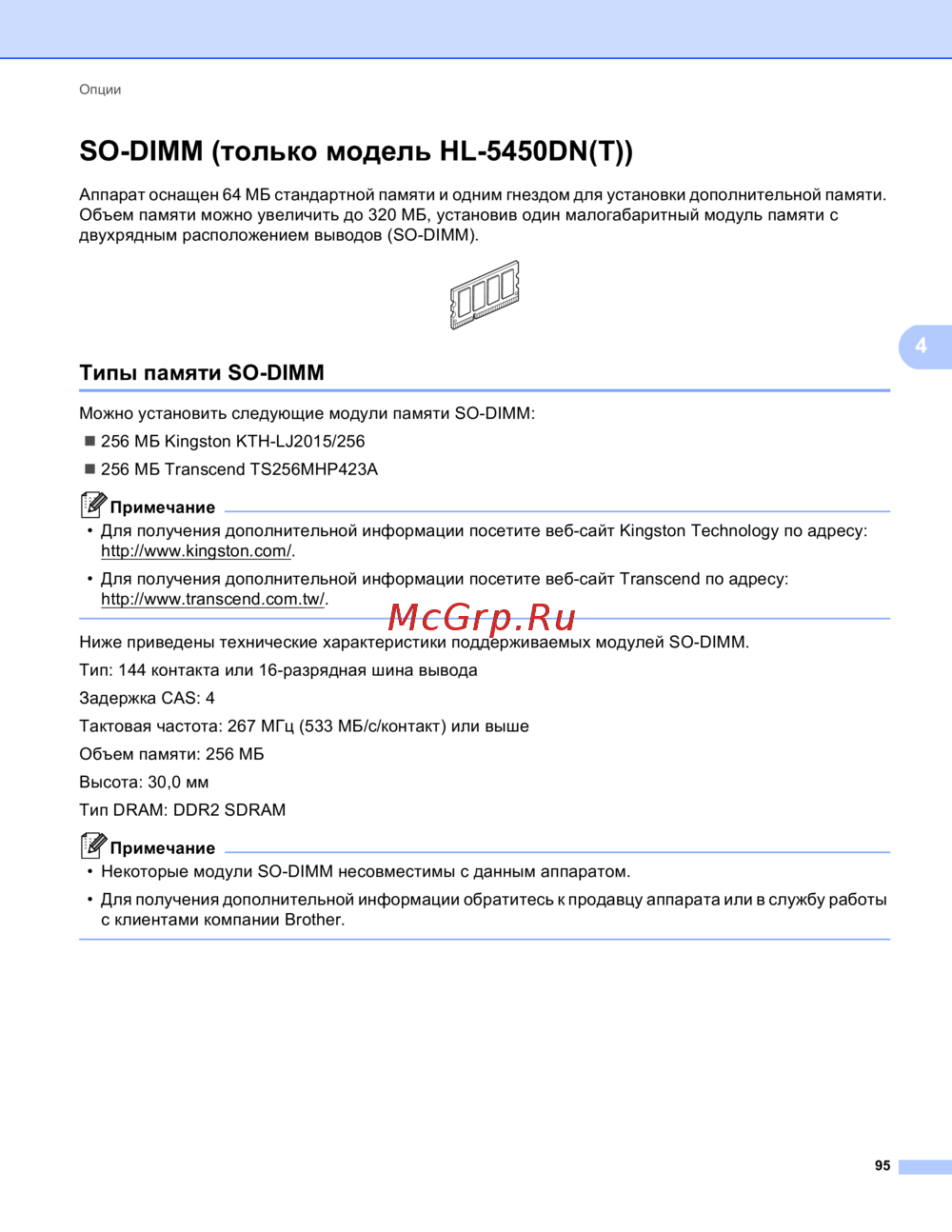 Brother HL-5450DNT [101/172] Типы памяти so dimm