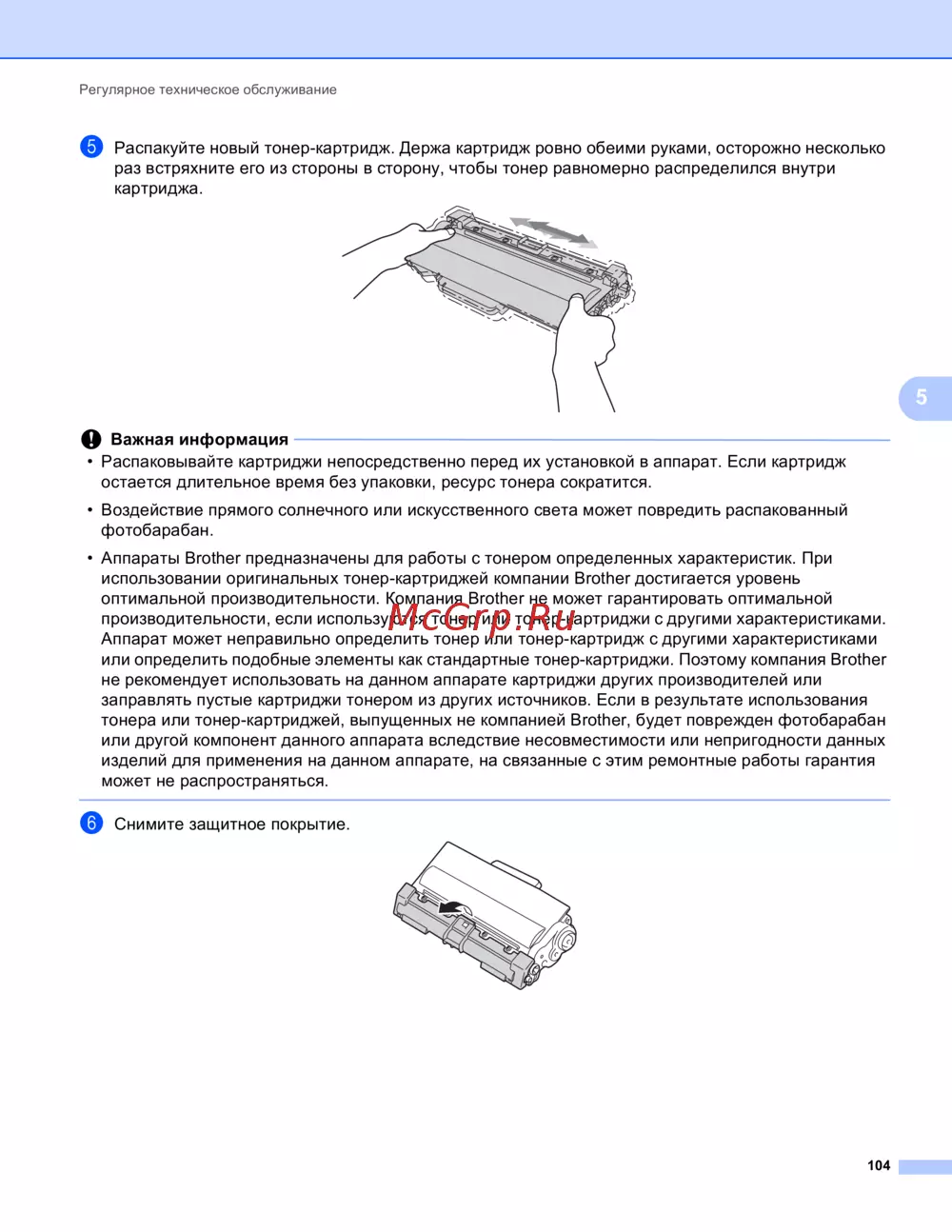 • Аппараты Brother предназначены для работы с тонером определенных характеристик. При