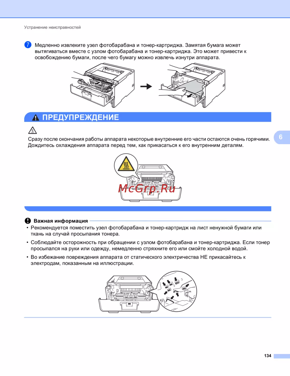 вытягиваться вместе с узлом фотобарабана и тонер-картриджа. Это может привести к