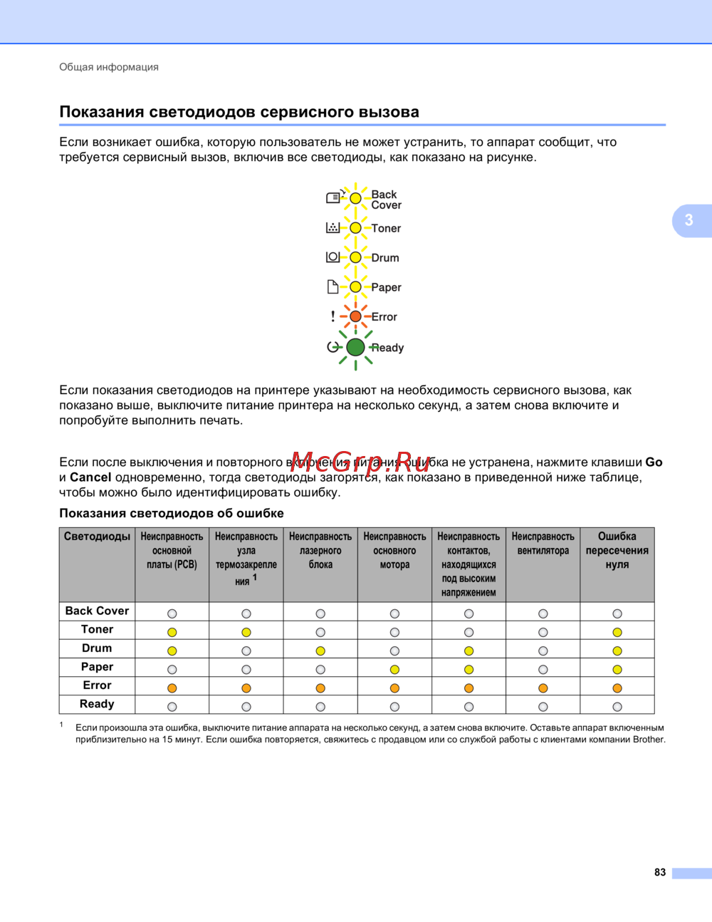 - Пользователь может самостоятельно выполнить действия необходимые для сброса большинства ошибок или для текущего обслуживания если необходима дополнительная помощь на веб сайте brother solutions center можно найти самые последние ответы на часто задаваемые вопросы и советы по поиску и устранению неисправностей посетите веб сайт http solutions brother com p.134