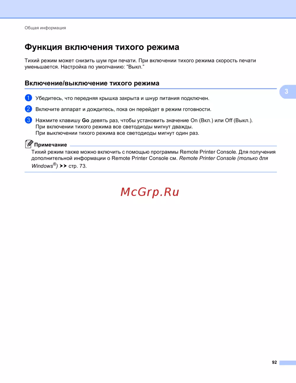 Тихий режим также можно включить с помощью программы Remote Printer Console. Для получения