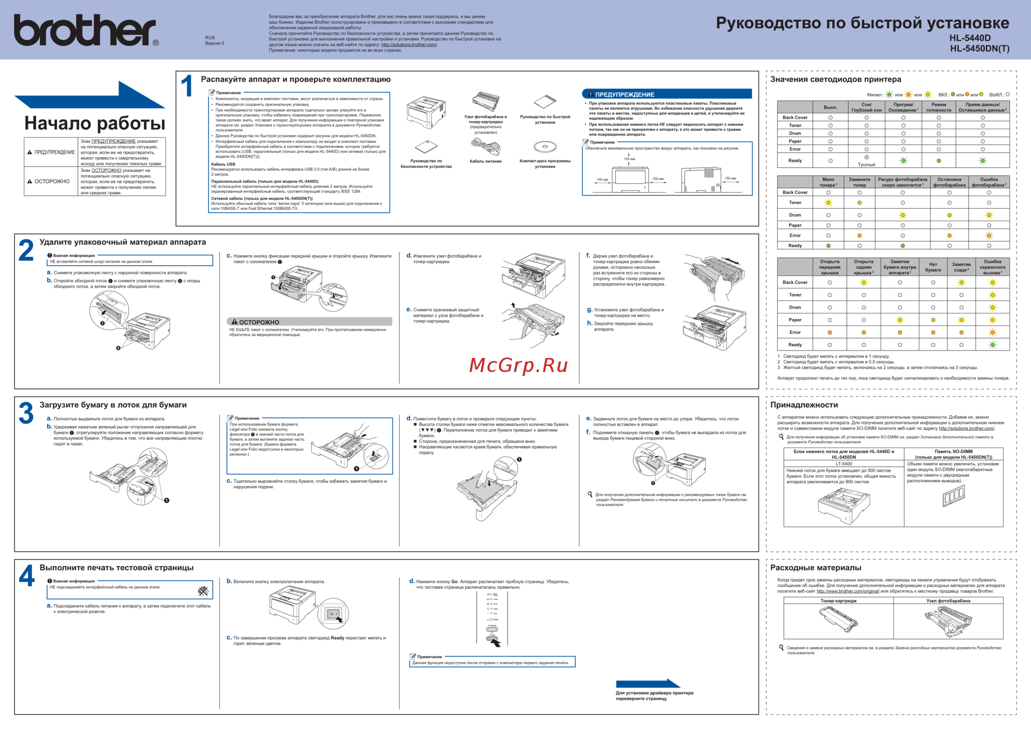 Brother HL-5450DNT — руководство по быстрой установке и подключению устройства [1/2]