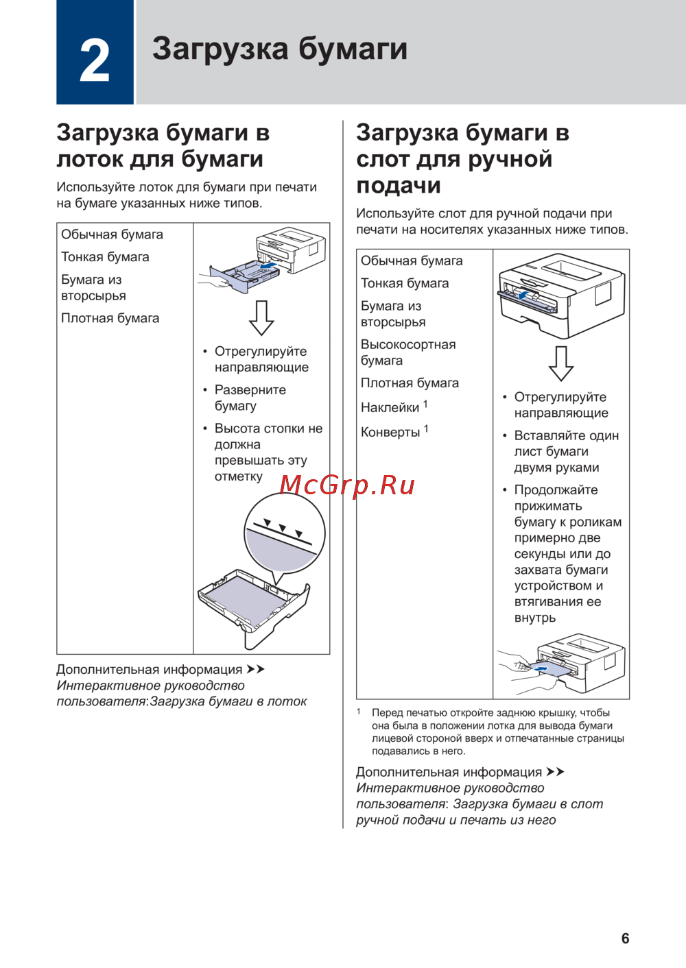 Узнайте, как правильно загружать бумагу в лоток и слот для ручной подачи. Следуйте простым инструкциям для различных типов бумаги и обеспечьте качественную печать.