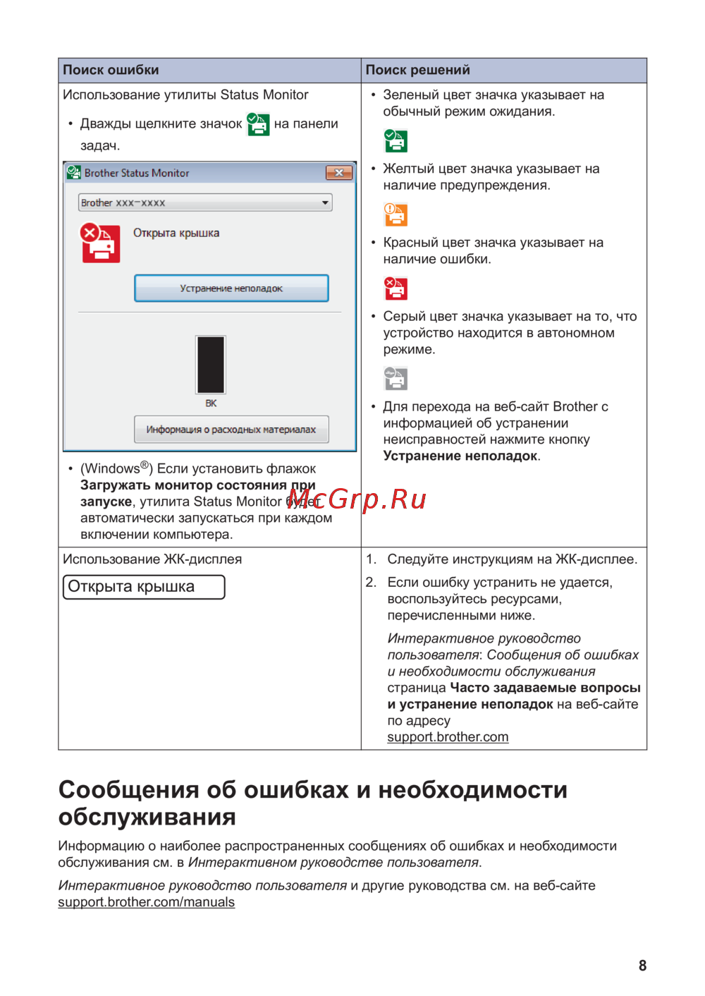 Brother HL-L2371DN — устранение ошибок и использование утилиты мониторинга состояния [9/14]