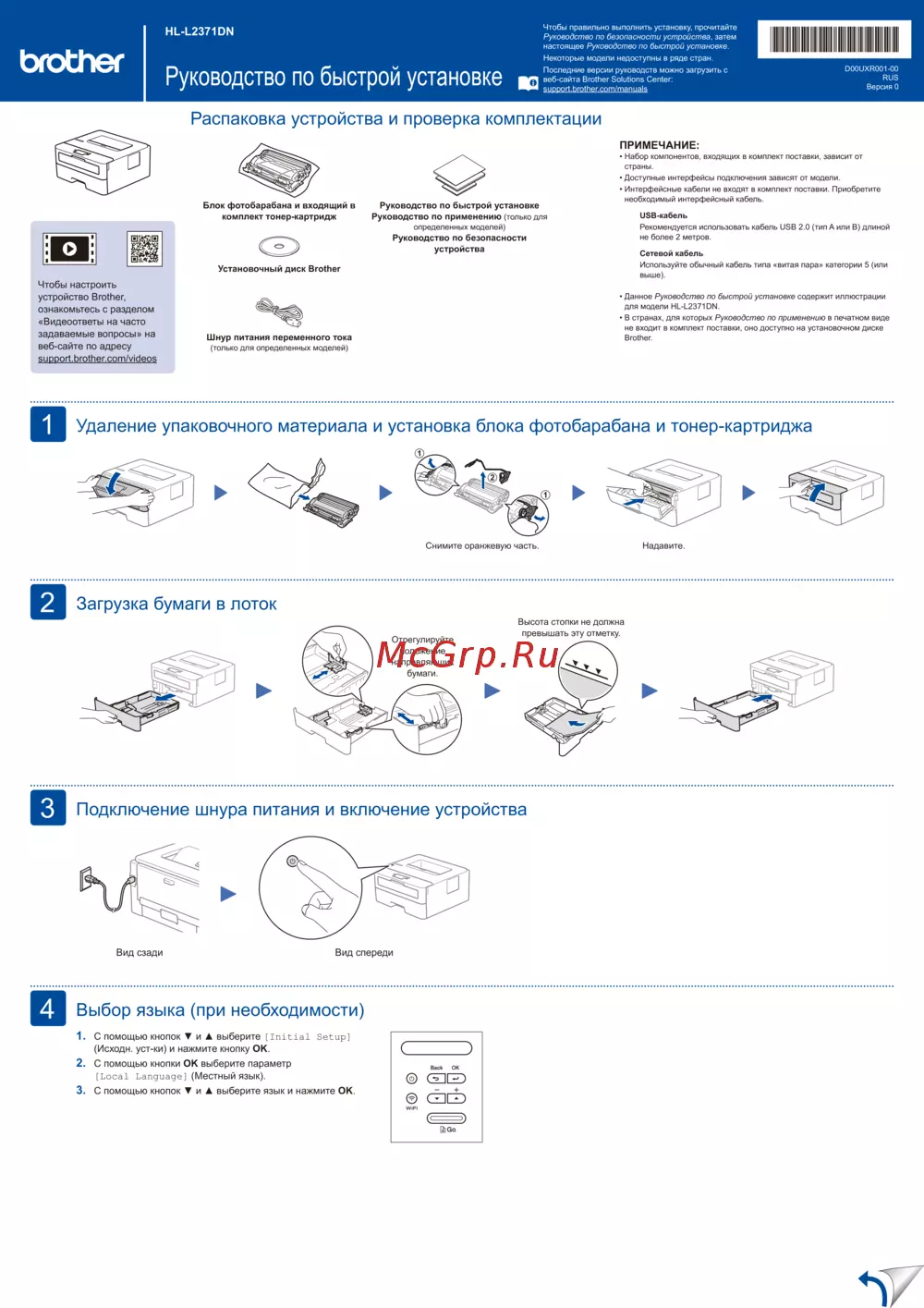 Brother HL-L2371DN — руководство по быстрой установке и настройке устройства [1/2]