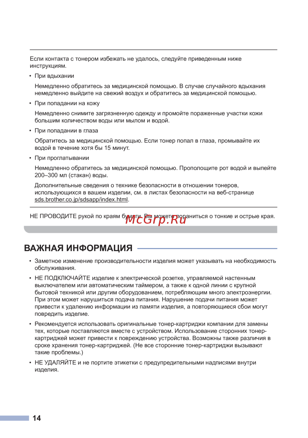 Brother HL-L2371DN — инструкции по безопасности при работе с тонерами и устройствами [14/23]
