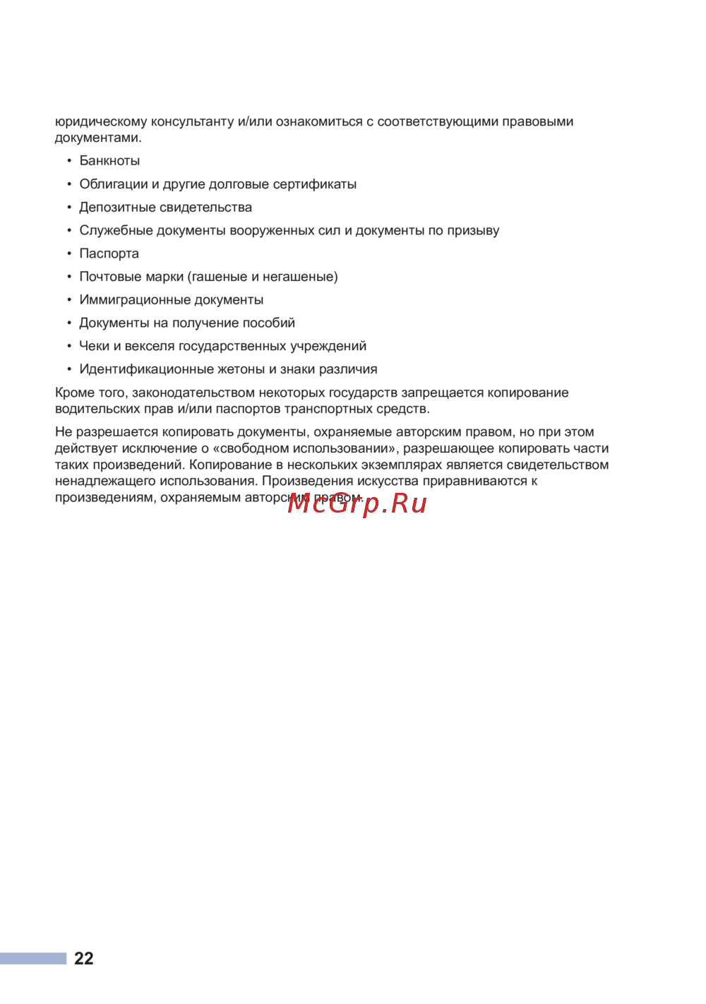 Не разрешается копировать документы, охраняемые авторским правом, но при этом