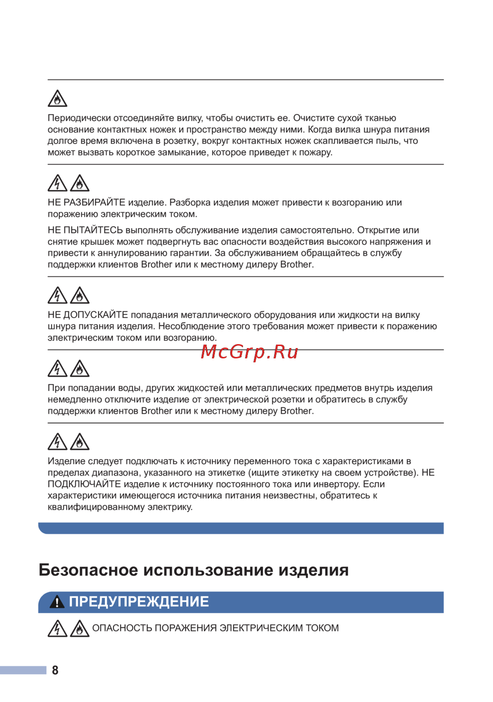 Brother DCP-7070DWИнструкция по технике безопасности -