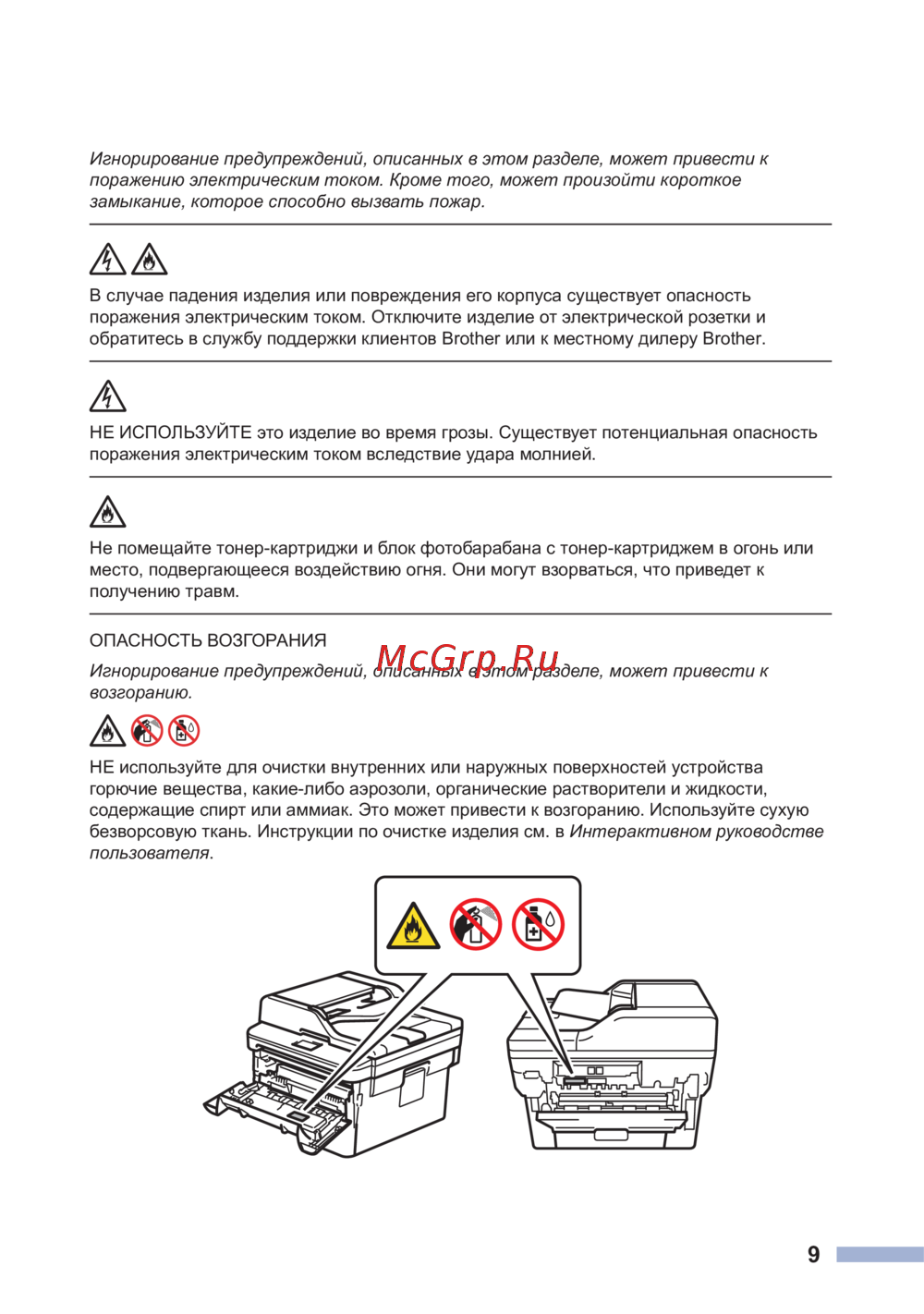 Brother DCP-7070DWИнструкция по технике безопасности -