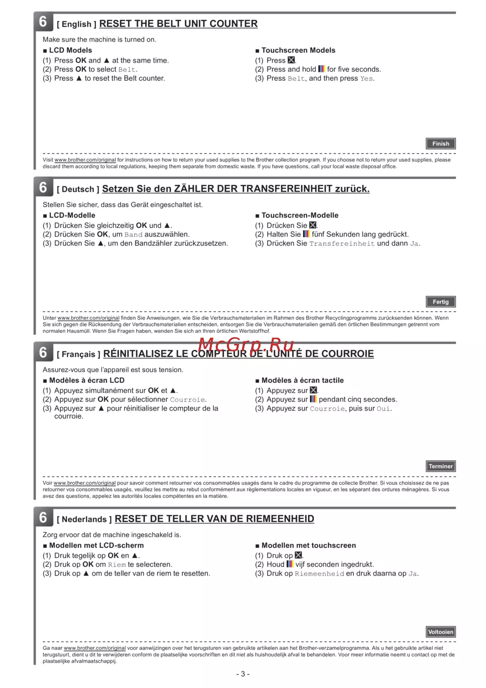 Brother HL-L3230CDW — инструкции по возврату и сбросу счетчика для устройств [4/12]
