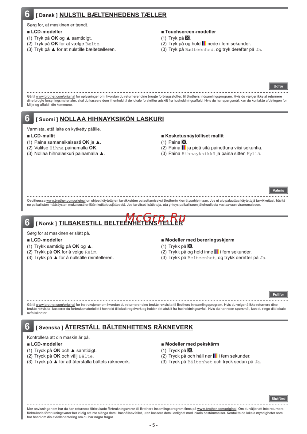 Mer anvisningar om hur du kan returnera förbrukade förbrukningsvaror till Brothers insamlingsprogram nns på www.brother.com/original.