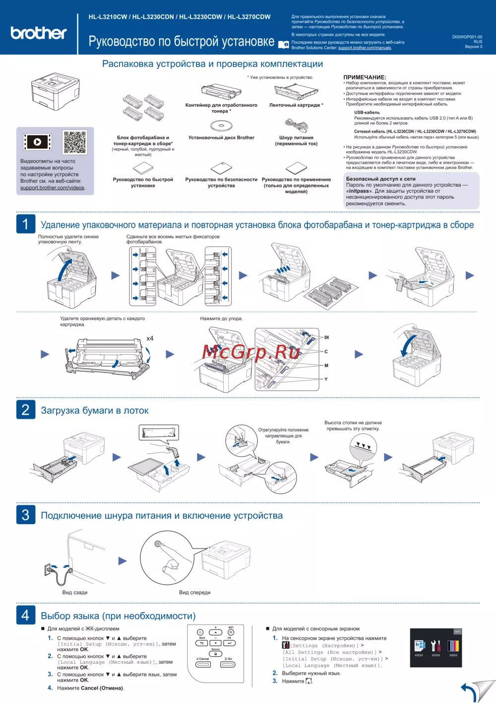 Brother HL-L3230CDW — инструкция по распаковке и настройке устройства: шаг за шагом [1/2]
