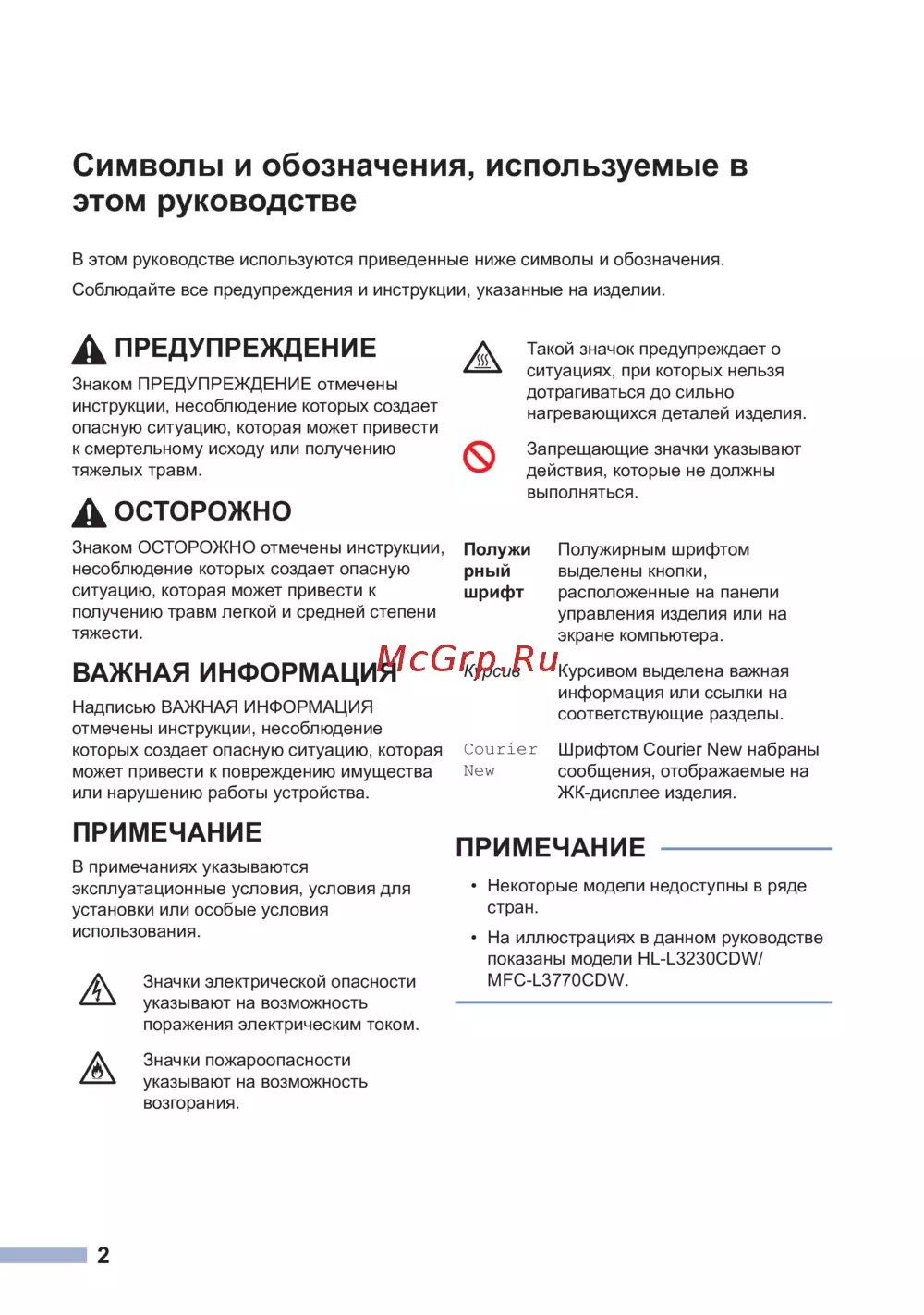 Brother HL-L3230CDW — символы и обозначения в руководстве пользователя [2/23]