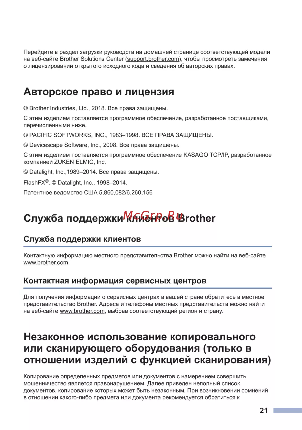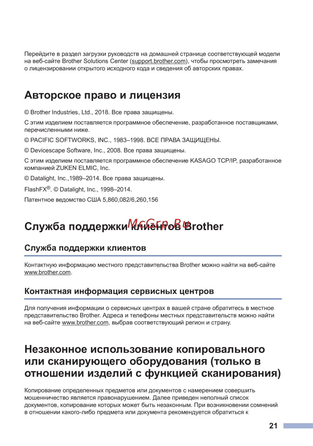 - Информация о разрешении на использование только для моделей серии mfc p.17