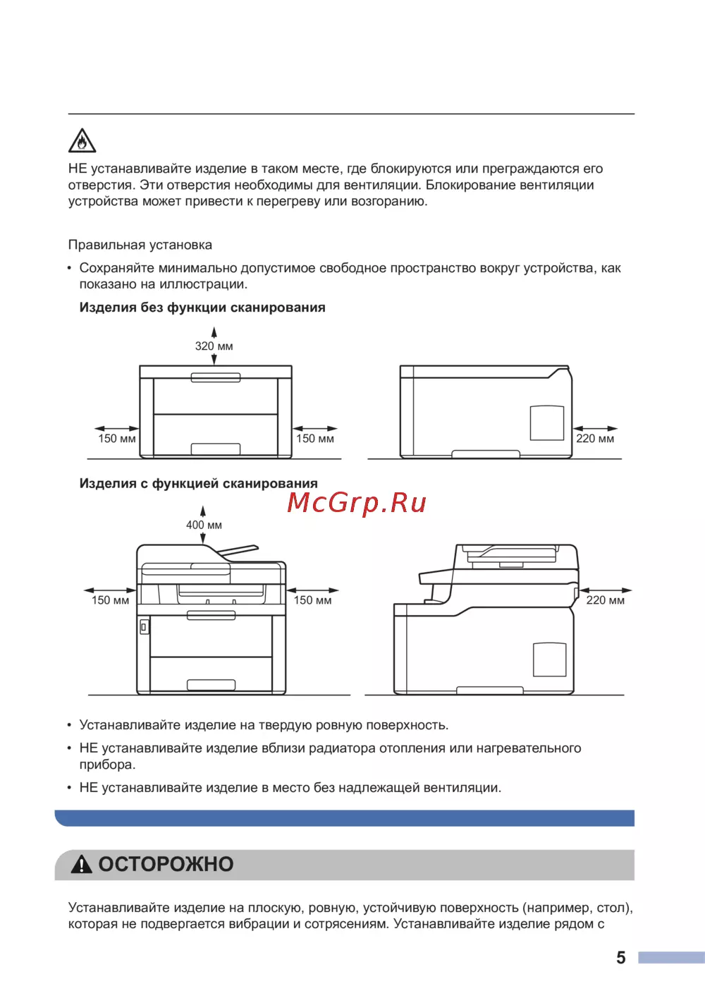 Brother HL-L3230CDW — правила установки для безопасной эксплуатации устройства [5/23]