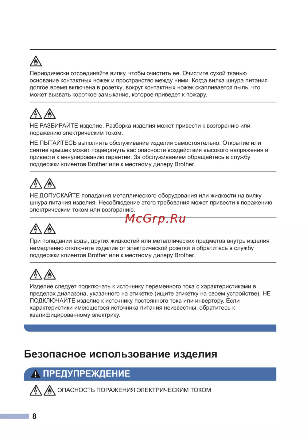 Brother HL-L3230CDW — советы по безопасному использованию электрических устройств [8/23]