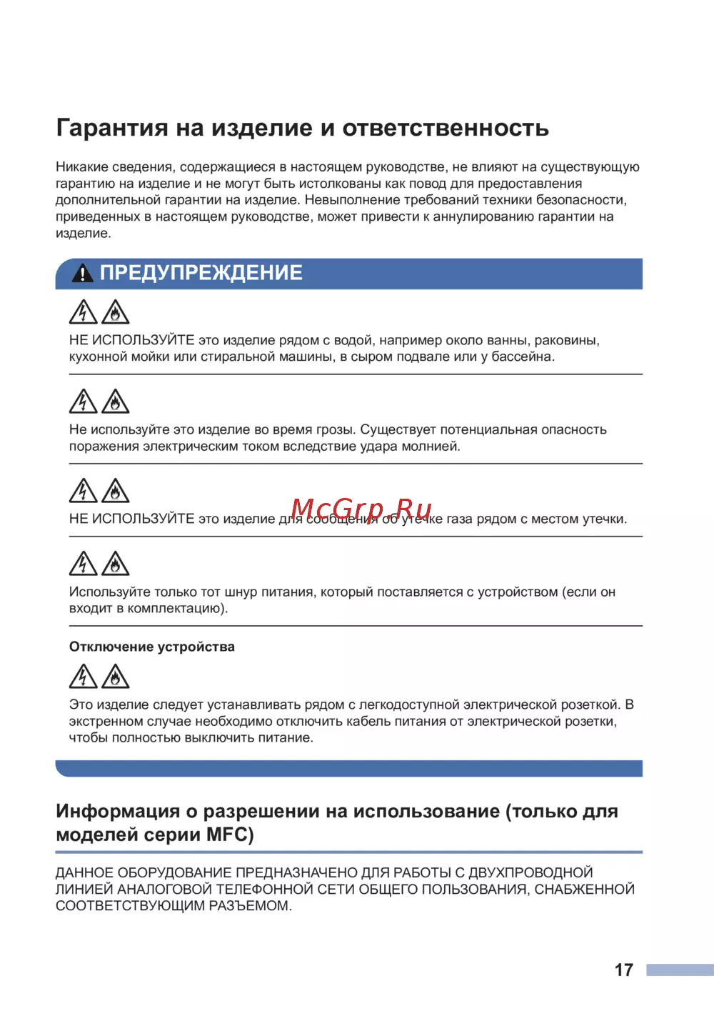 - Информация о разрешении на использование только для моделей серии mfc p.17