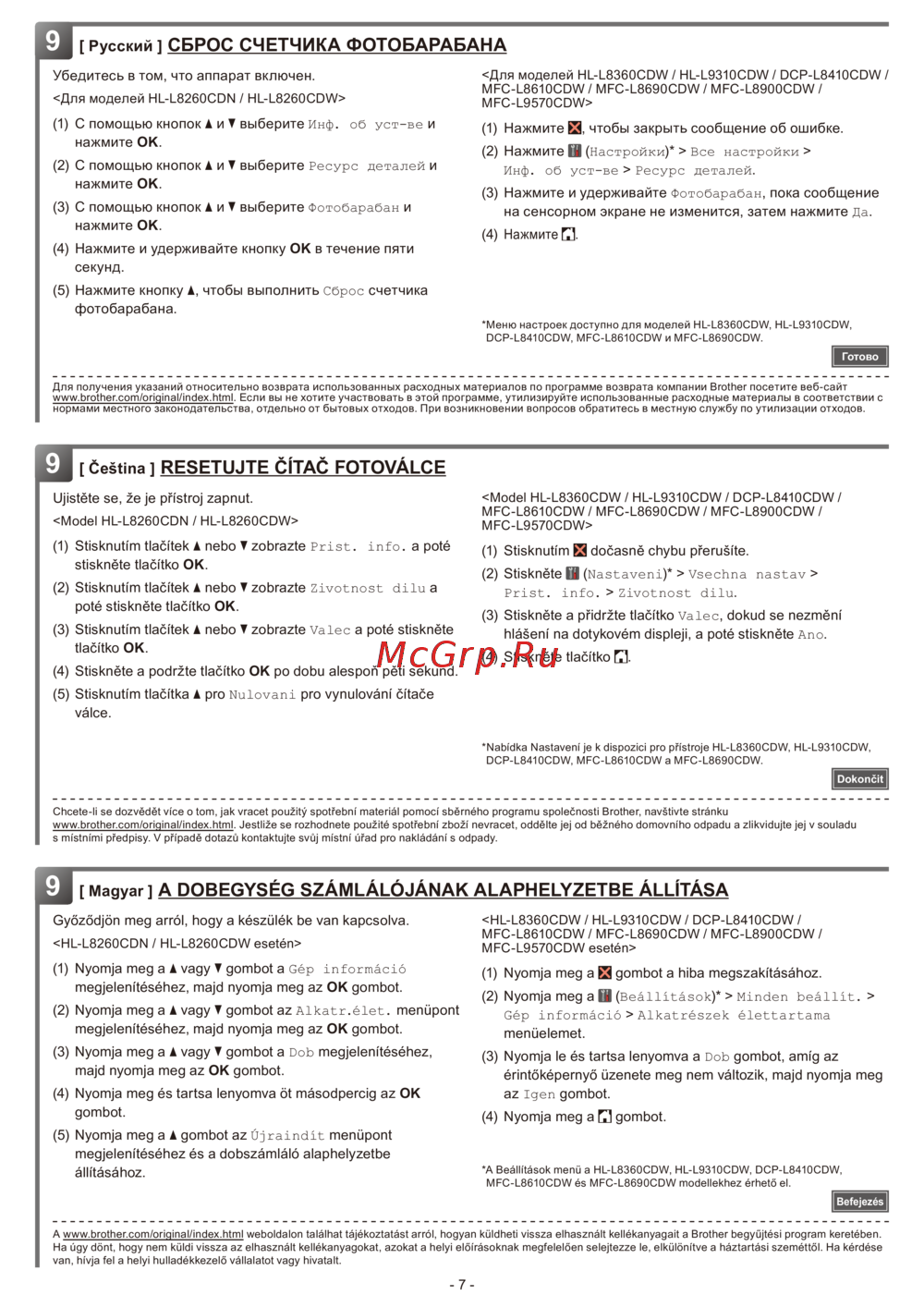 ![Brother MFC-L9570CDW [8/11] Сброс счетчика фотобарабана](/views2/1469128/page8/bg8.png)